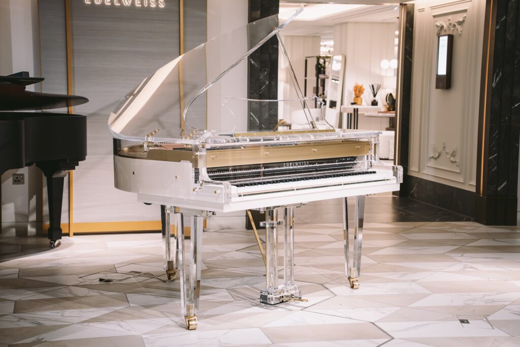 Only valid for the 2 Transparent Grand Pianos we have available ready for pre-Christmas delivery.