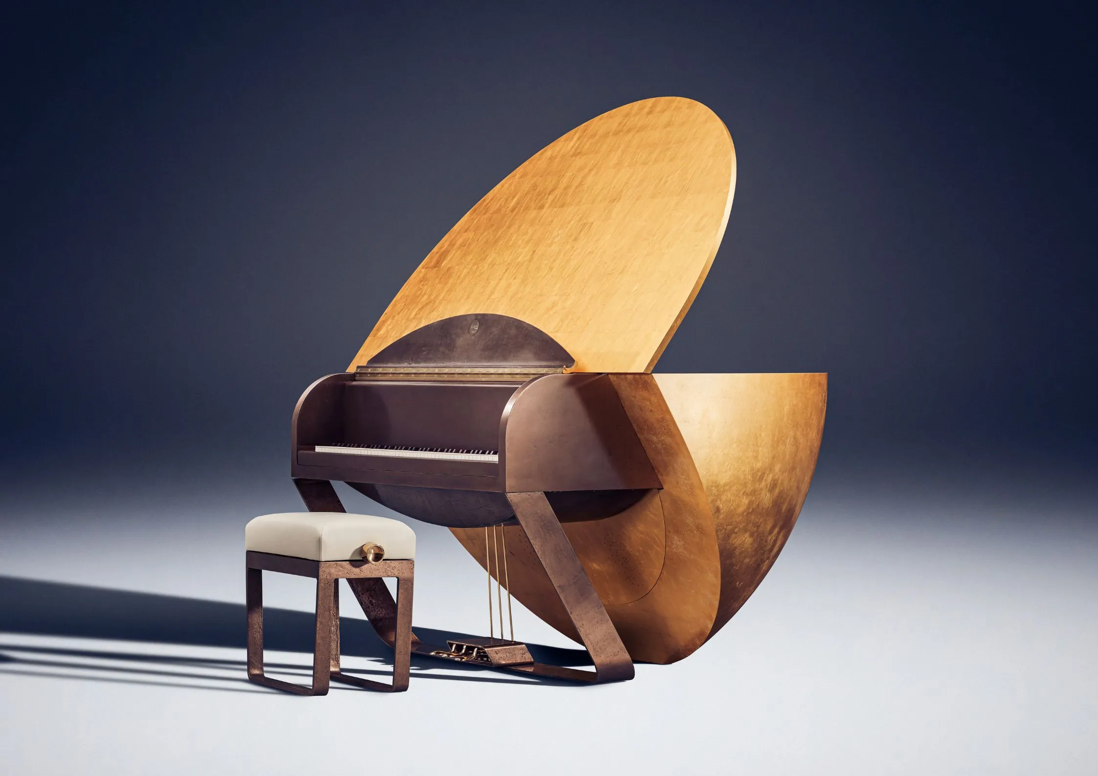 The ‘sun discs’ are finished in our specially developed Sunbaked Gold – a radiant surface crafted using 2 carat gold leaf – while the body is tastefully contrasted in Heirloom Bronze, a pure liquid metal finish.